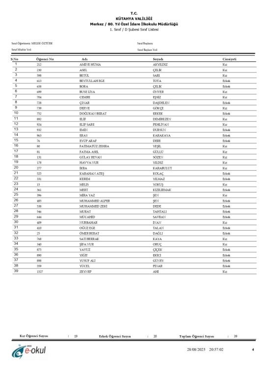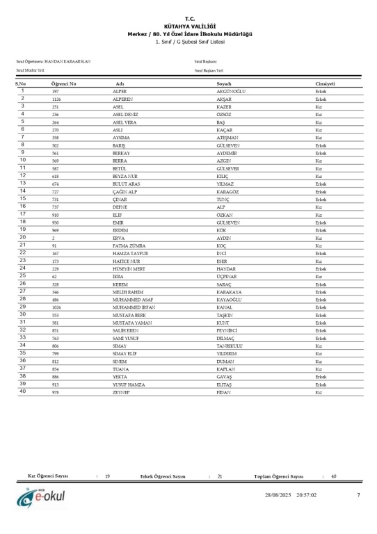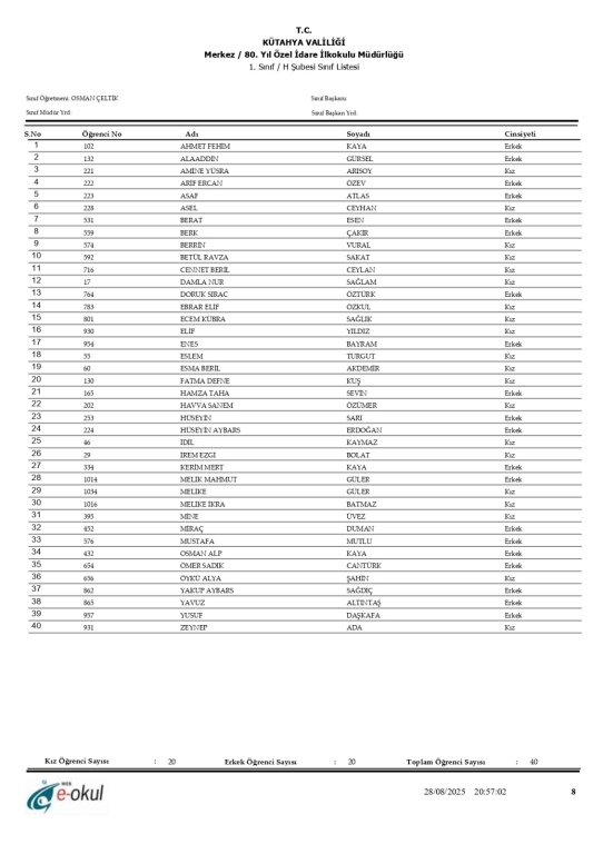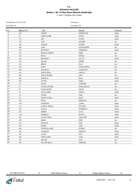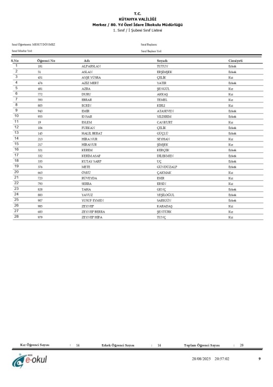 2025-2026 EĞİTİM ÖĞRETİM YILI 1. SINIFLAR KURA SONUÇLARI