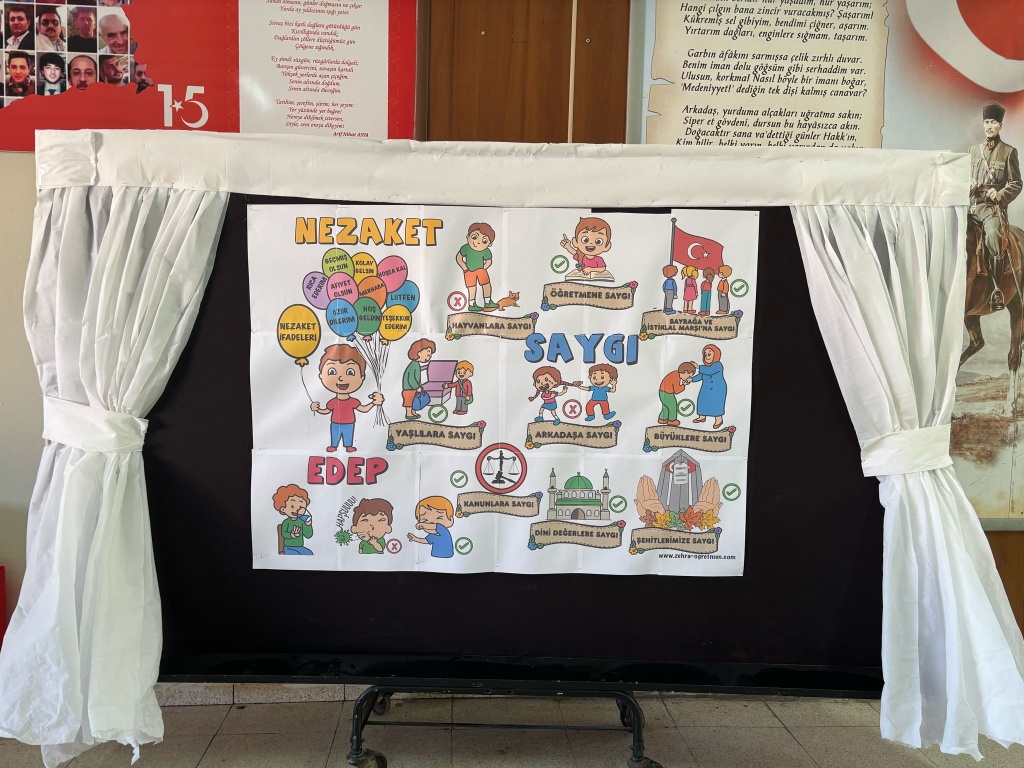 "Değerlerimizle Yaşıyoruz Projesi" mart ayı etkinliği "Saygı" konulu pano çalışmamız