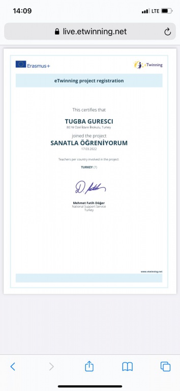 Sanatla Öğreniyorum etwining projesi başlıyor. Sınıf Öğretmenlerimiz Aslı DÖNMEZ, Tuğba GÜREŞCİ ve Mehmet ÖZBAĞ koordinatörlüğünde yürütülen proje 1 ay sürecek. Bu projede, öğrencilerimiz hem eğlenecek hem de sanatın farklı dallarını keşfedecekler. Öğretmenlerimize ve öğrencilerimize başarılar dileriz.